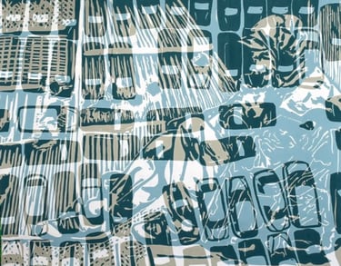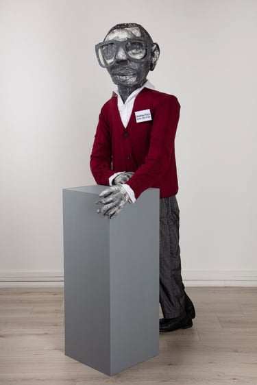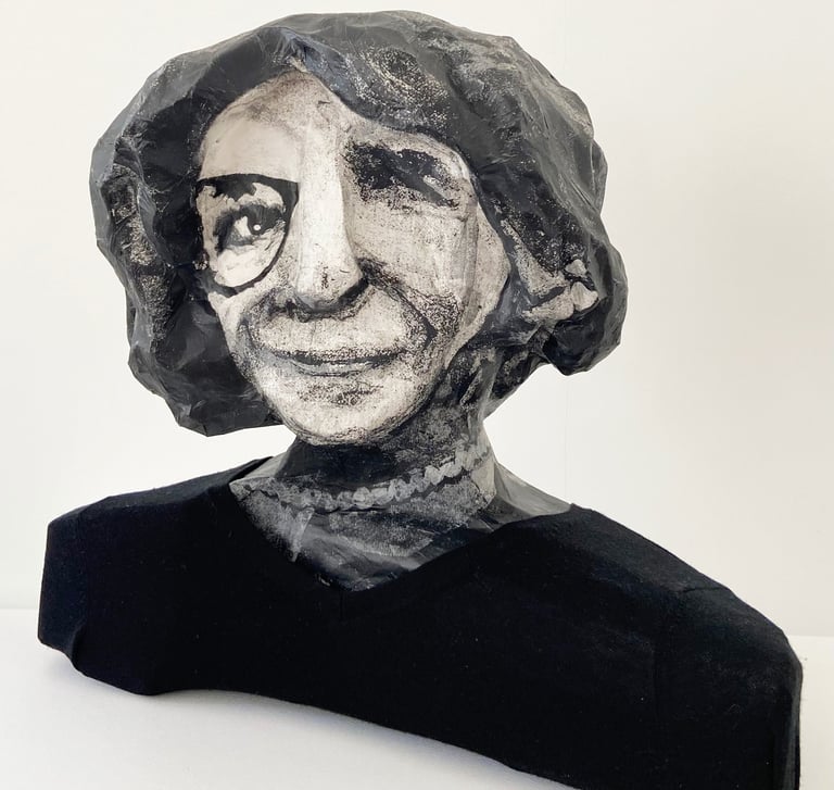 Mrs Robinson, silkscreen on papier mache, 50 x 70 x 25cm 2024
